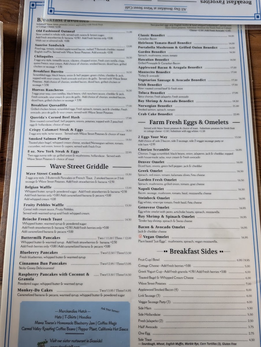 Wave Street Cafe is not just a place to eat; it’s an experience that combines delightful food, stunning views, and a vibrant atmosphere that captures the essence of Monterey dining. Whether you’re craving classic breakfast items or inviting variations like the hearty Breakfast Quesadilla, there’s something for everyone on the menu. As Douglas Carey mentioned, the location can be a bit tricky to find, tucked away downstairs, but the effort is undoubtedly worth it for the culinary delights and ambiance that await you. So next time you wander through Monterey, make a pit stop at Wave Street Cafe for a delicious meal that you won’t soon forget.